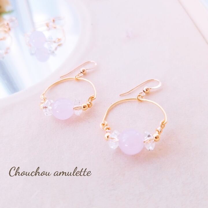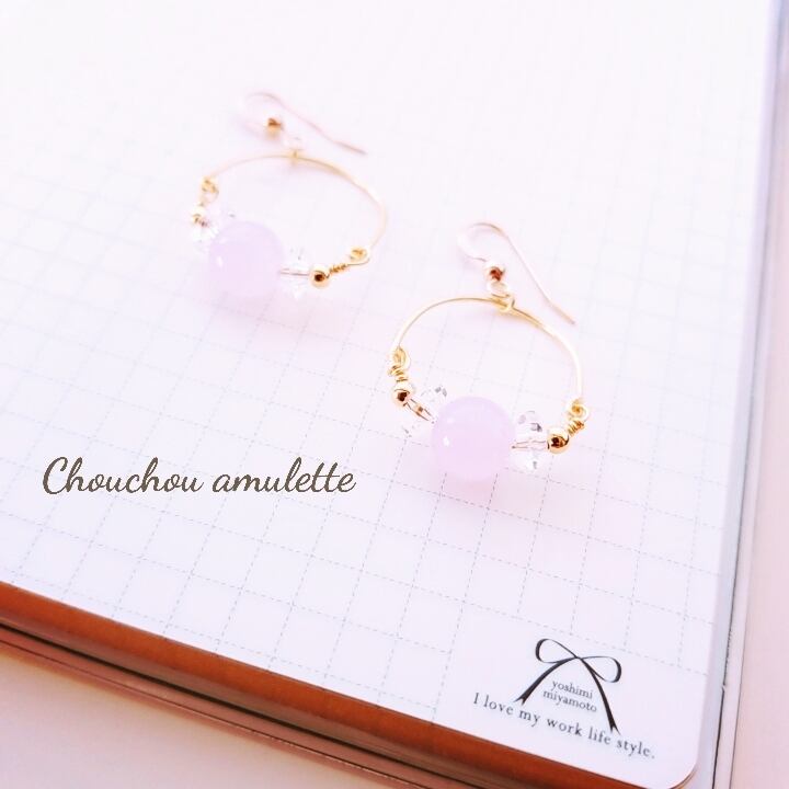 人とのご縁をつなぐお守り、カルセドニーのピアスです。