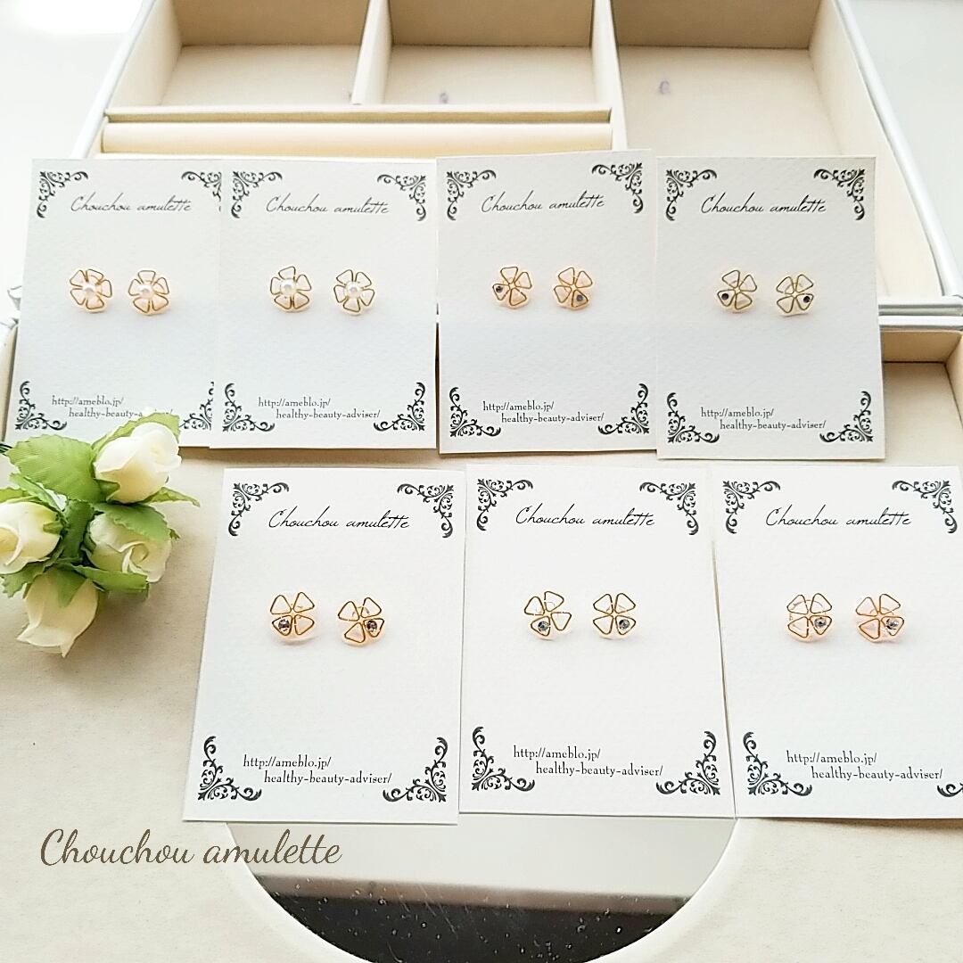 その他、クリアピンク、クリアイエローと、スワロフスキークローバーモチーフもあります。