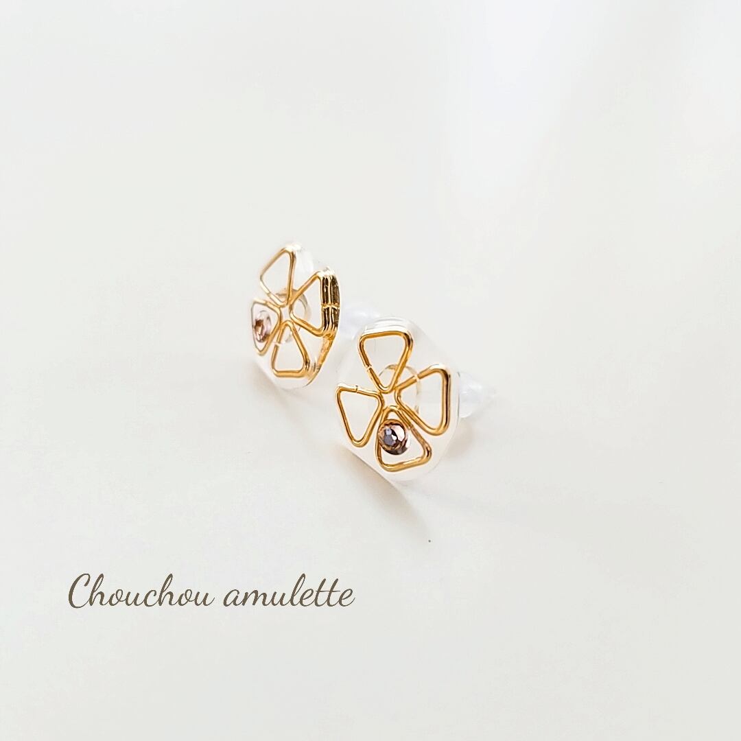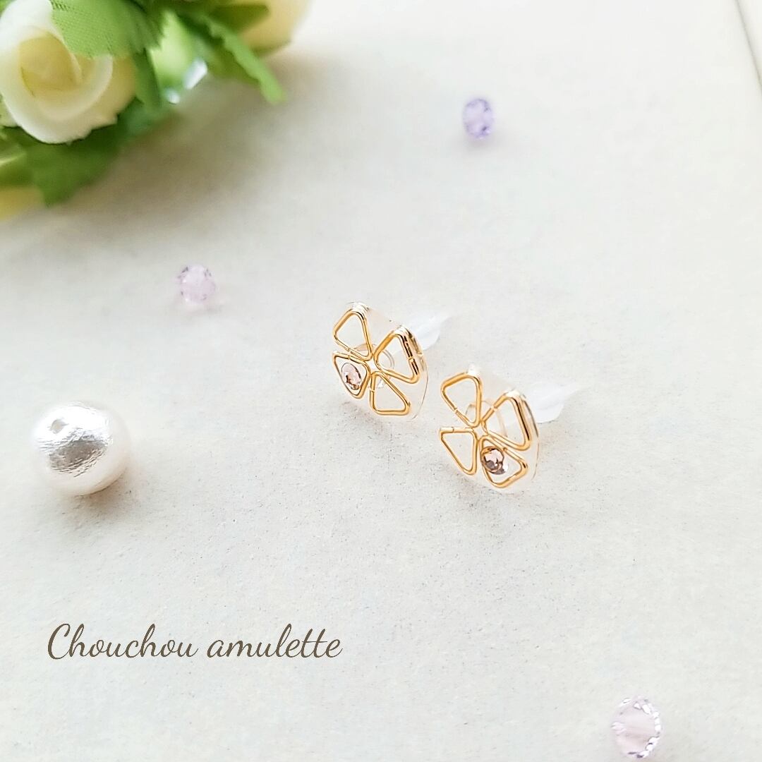 シンプルで美しい、スワロフスキーのクローバーピアスです。