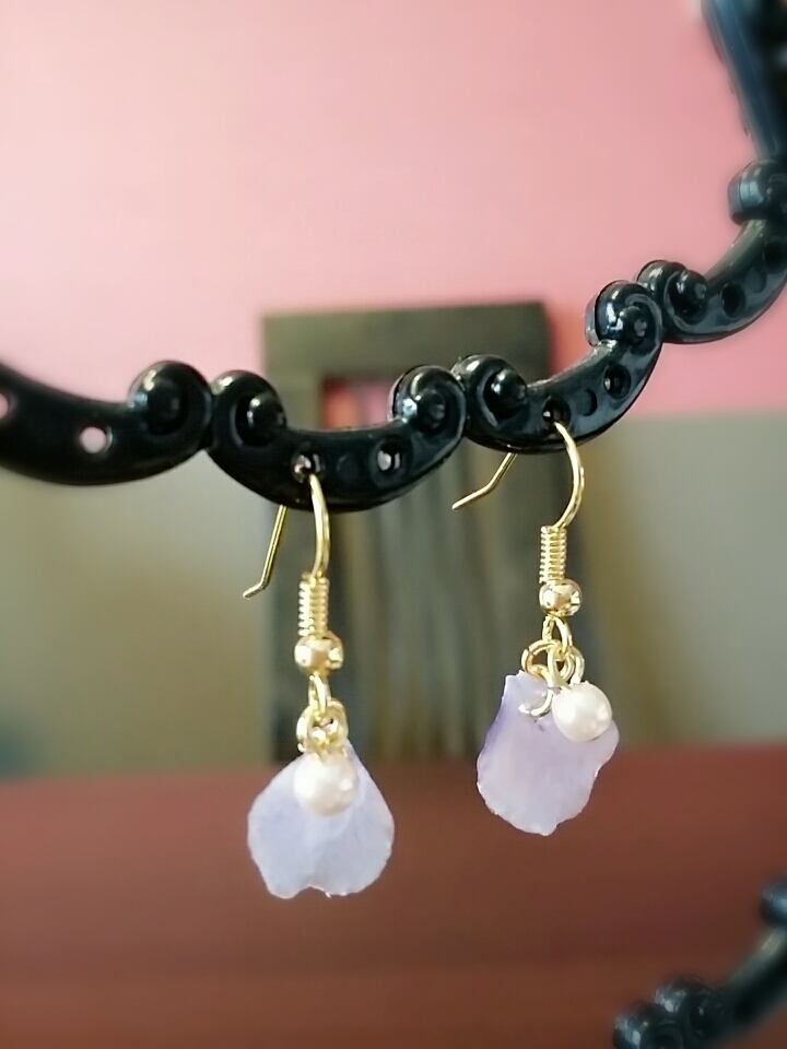 シンプルですが、ツヤツヤあじさいの花の色がキレイに発色するピアスになりました♪