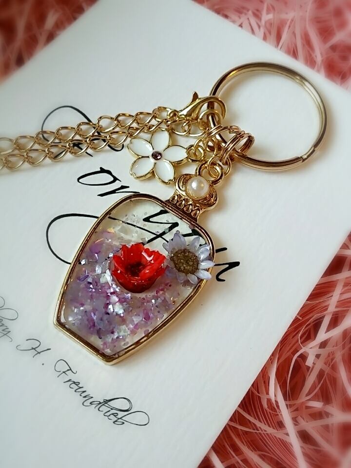 香水瓶フレームのバッグチャームです。
