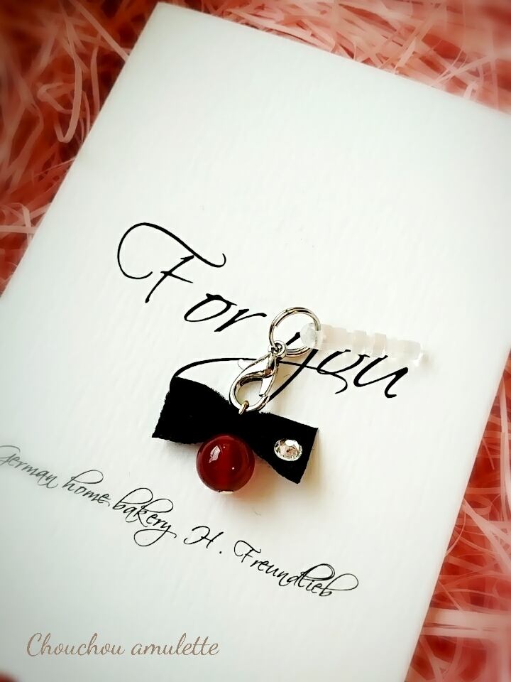 【子宝に恵まれるお守り】ベルベットリボンイヤホンジャック・レッドアゲート