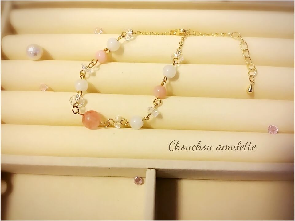 ブレスレットはチェーンタイプで、アジャスターでサイズ調節が可能です。