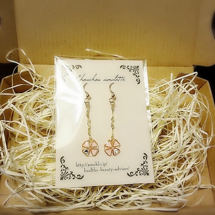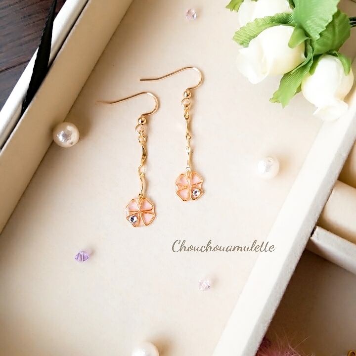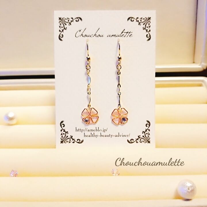 【優しさに包まれる】四つ葉クローバーピアス ピンク