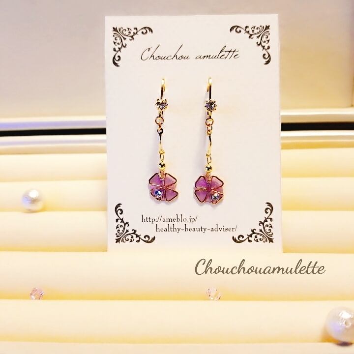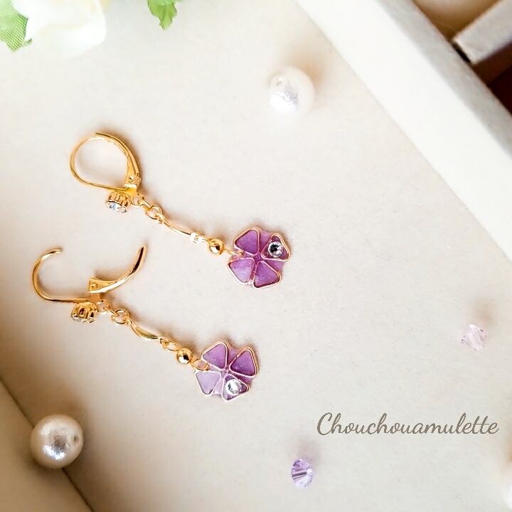 【凛とした強さをまとう】四つ葉クローバーピアス ラベンダー